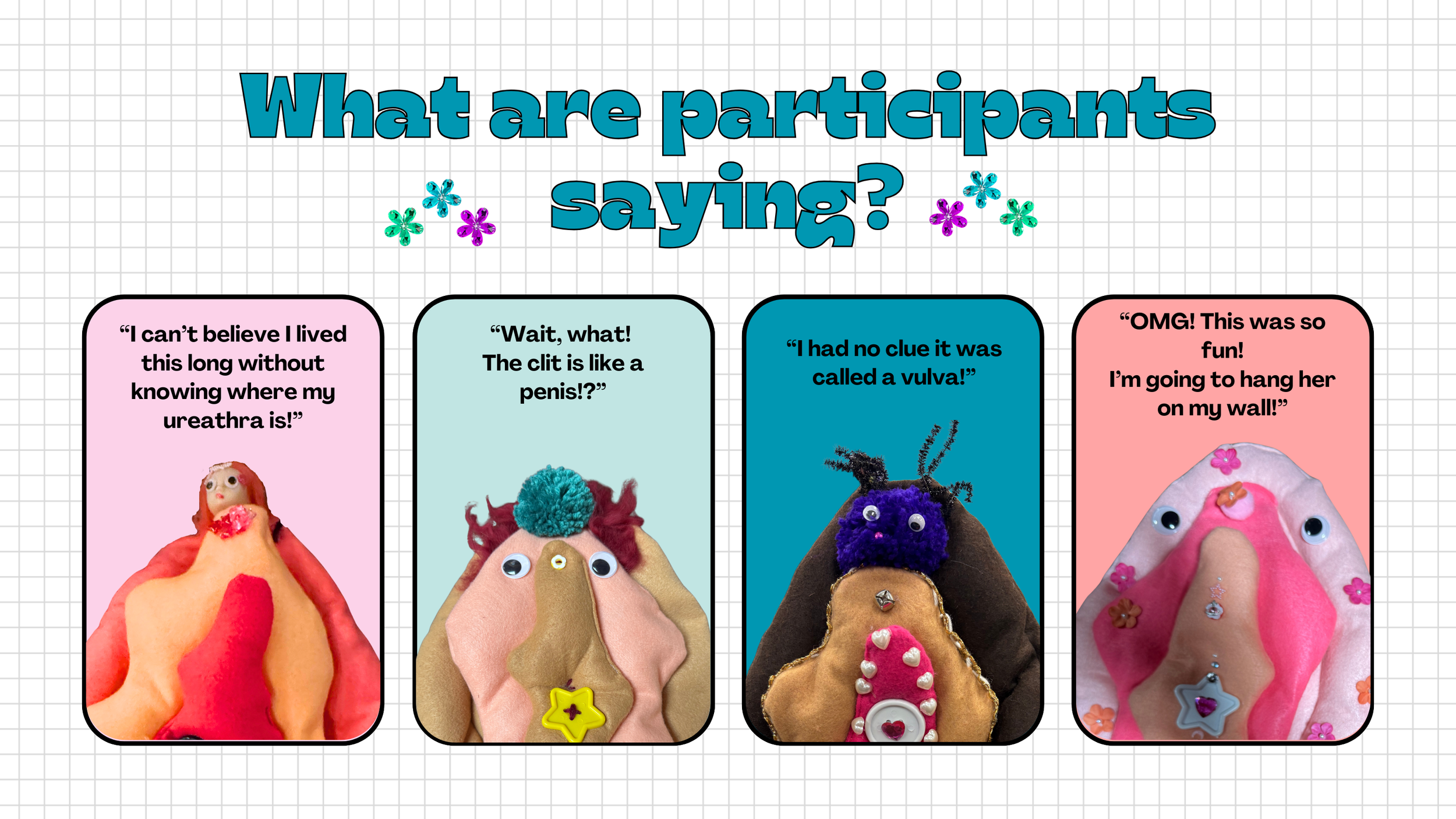 We believe learning about our bodies and relationships should be as engaging as it is essential. Using humor, gamification, and art—whether in the classroom, at Teen Pride, or in the Vulva Project—we create brave, joyful spaces where young people, families, and educators can learn together, confront stigma, and celebrate every body.